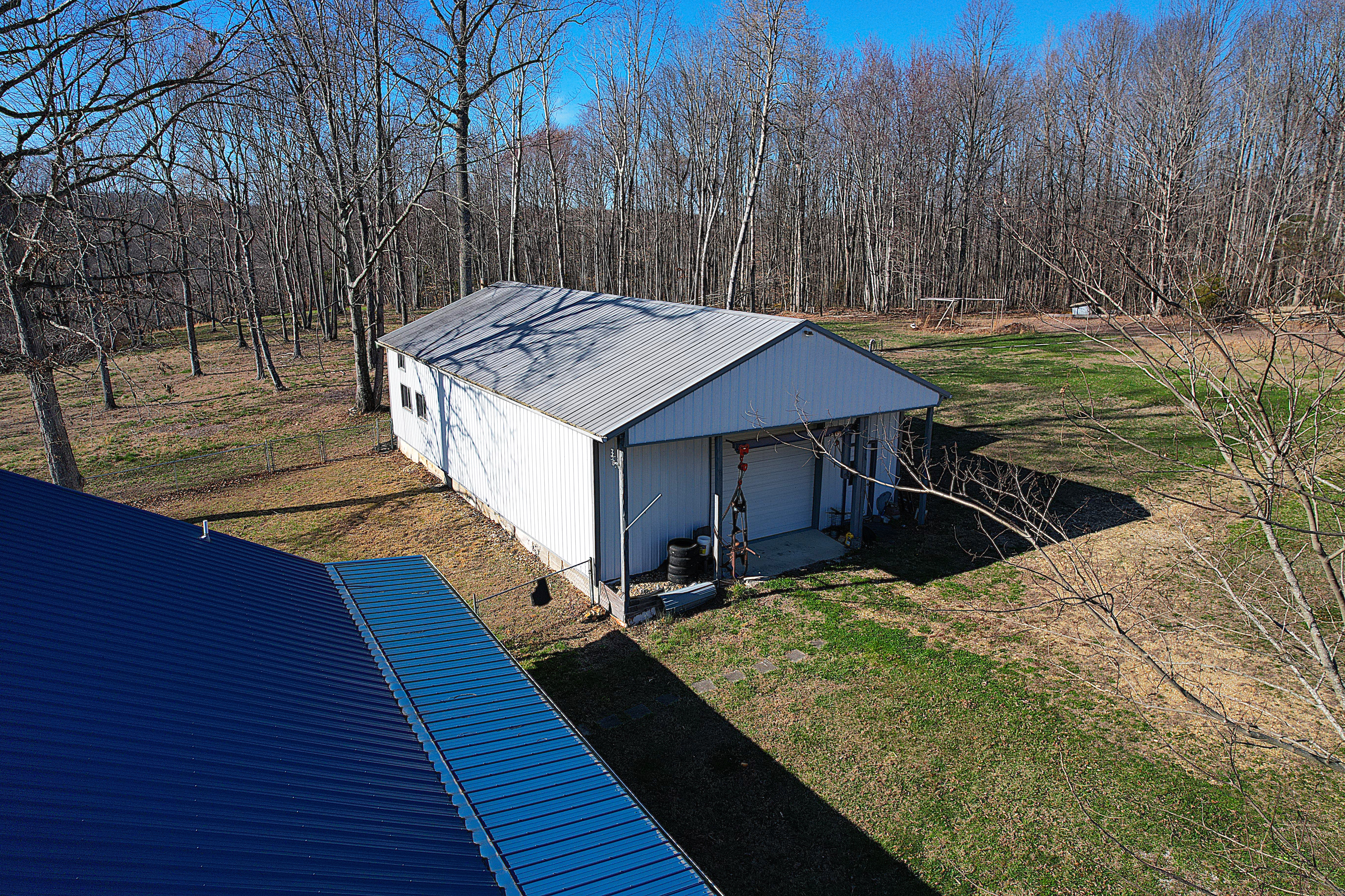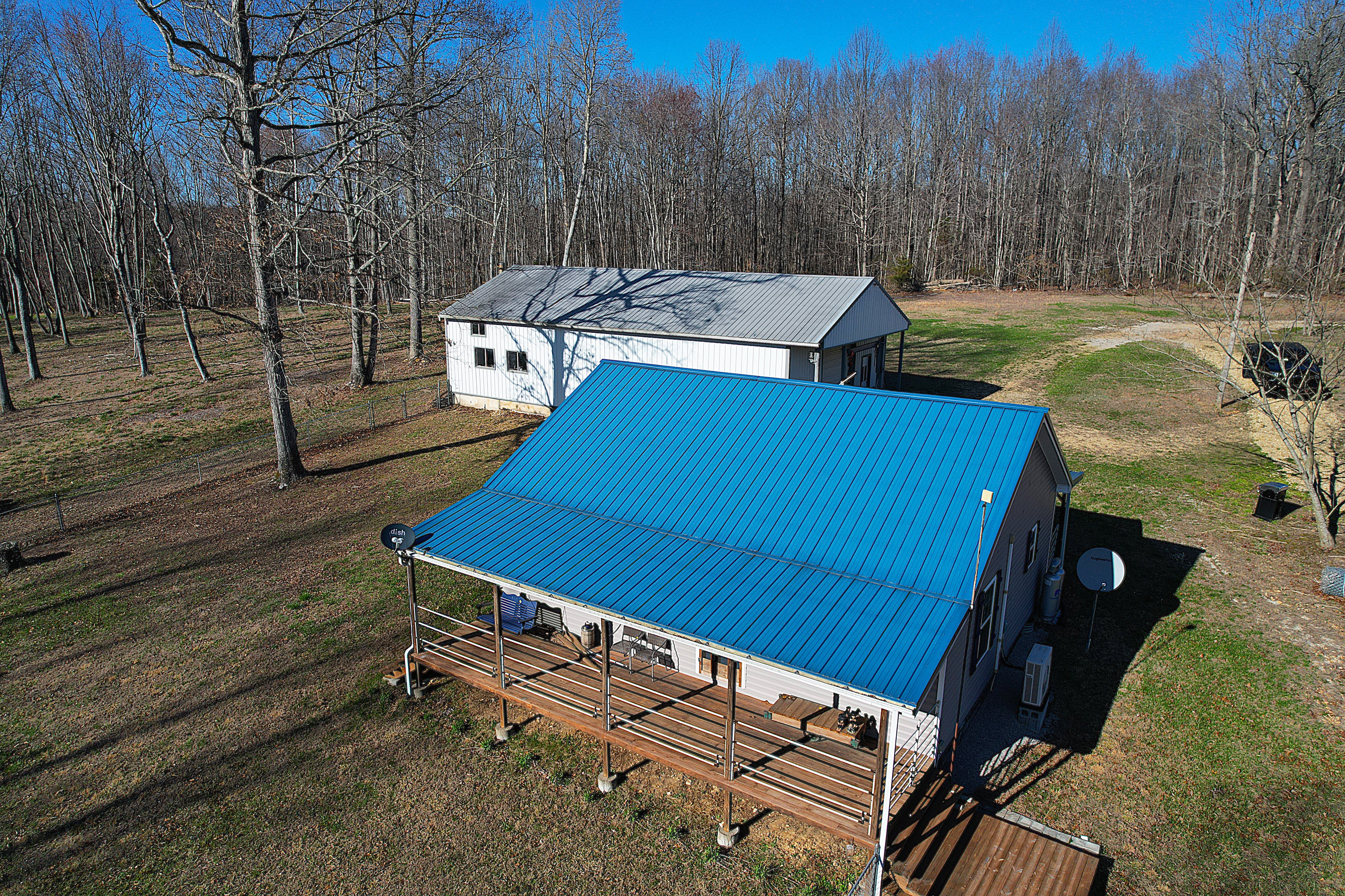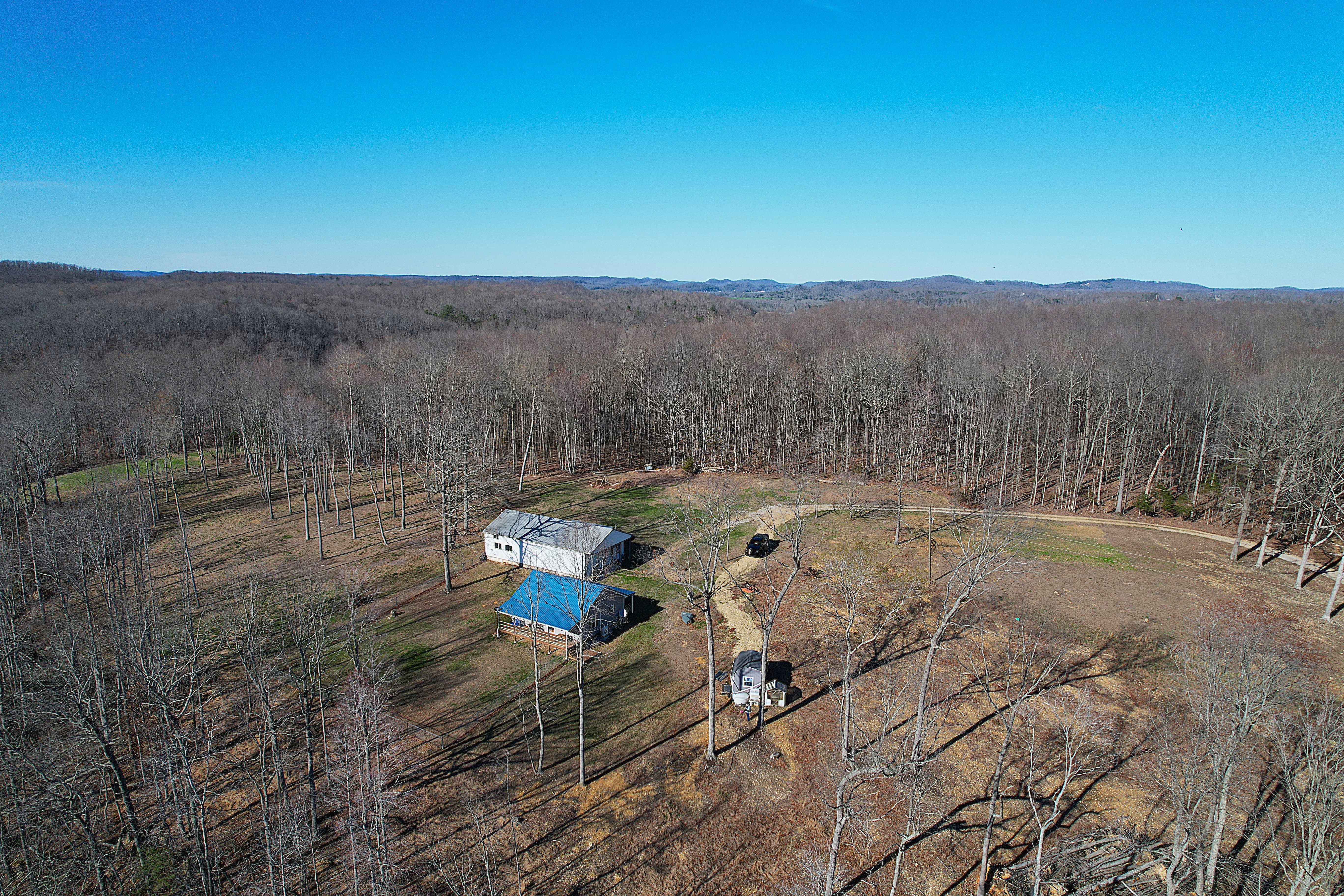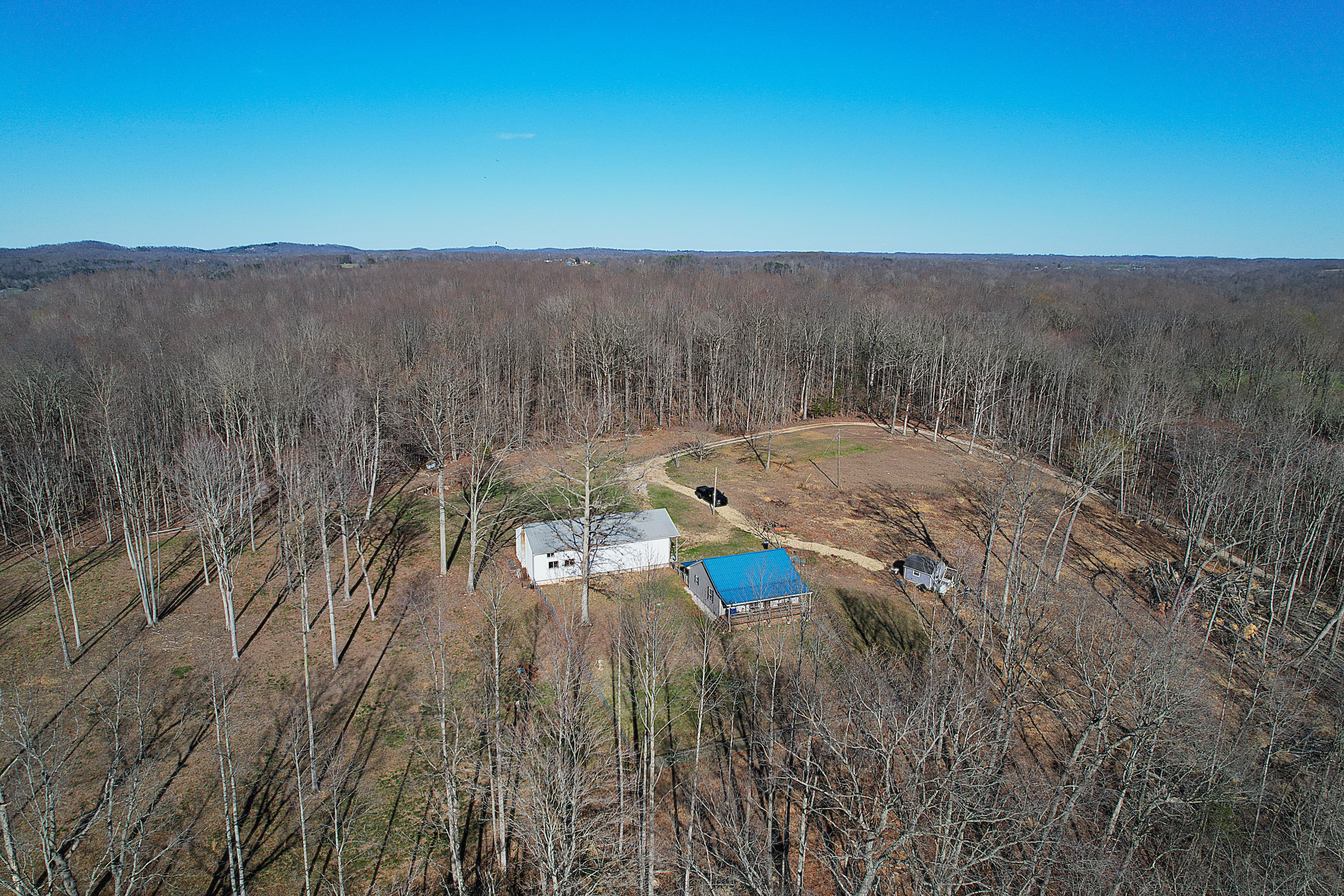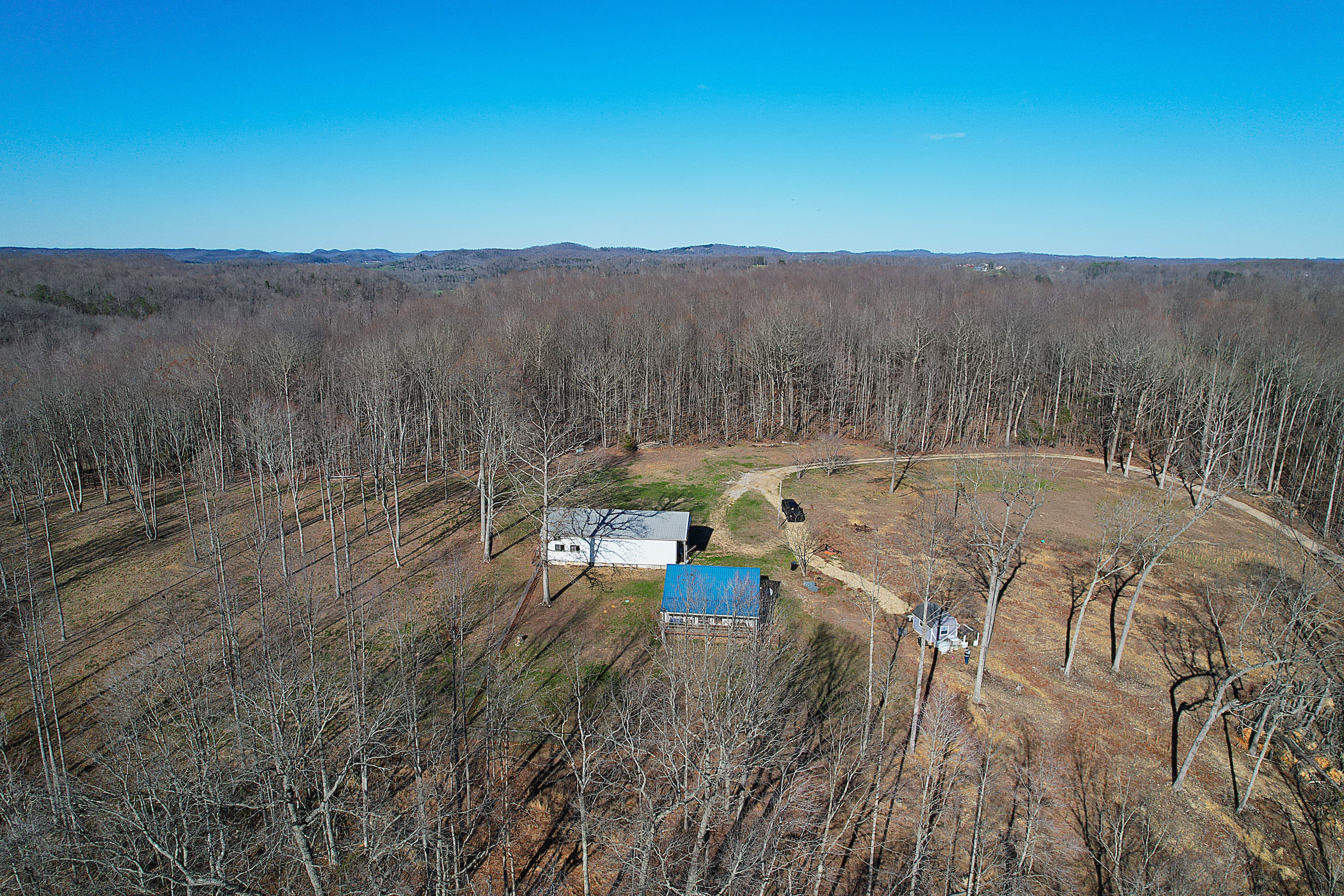 Very nice, well-kept home along with a large garage/workshop on 12.8+/- acres in Casey County Kentucky. The house has connection to electric and county water along with a mini-split unit for heating and air conditioning. The home was built in 2018 and features one bedroom and one bath with approx. 896 square feet of living space. Entering the front door leads to the open concept living room/kitchen area with plenty of room for seating and dining table. The kitchen has a stove, refrigerator and dishwasher that will remain with the property along with custom cabinets. With 12' vaulted ceilings the living space feels very spacious and gives off the country cabin vibe. Around the corner is the bedroom with space for a bedroom suite as well has having two closets. There is a full bathroom along with large laundry room at the back of the home as well. The house offers two covered porches, one on both the front and back of the home giving beautiful views of the outdoors as well as areas to see both sunrise and sunset. The garage offers plenty of space for storage as well as room for wood or metal working, mechanical space or etc. There are separate rooms in the garage with the main working/storage area at the front with a smaller room at the back and an additional closed in shed toward the east end of the building. The land is mostly wooded with clearings near the home as well as a food plot for hunting whitetail deer as well as turkey that are both abundant in the area. The driveway is part of the property but also is an easement for the adjoining land owner to access their land. If peaceful, country living is one of your priorities, you have to check this place out.