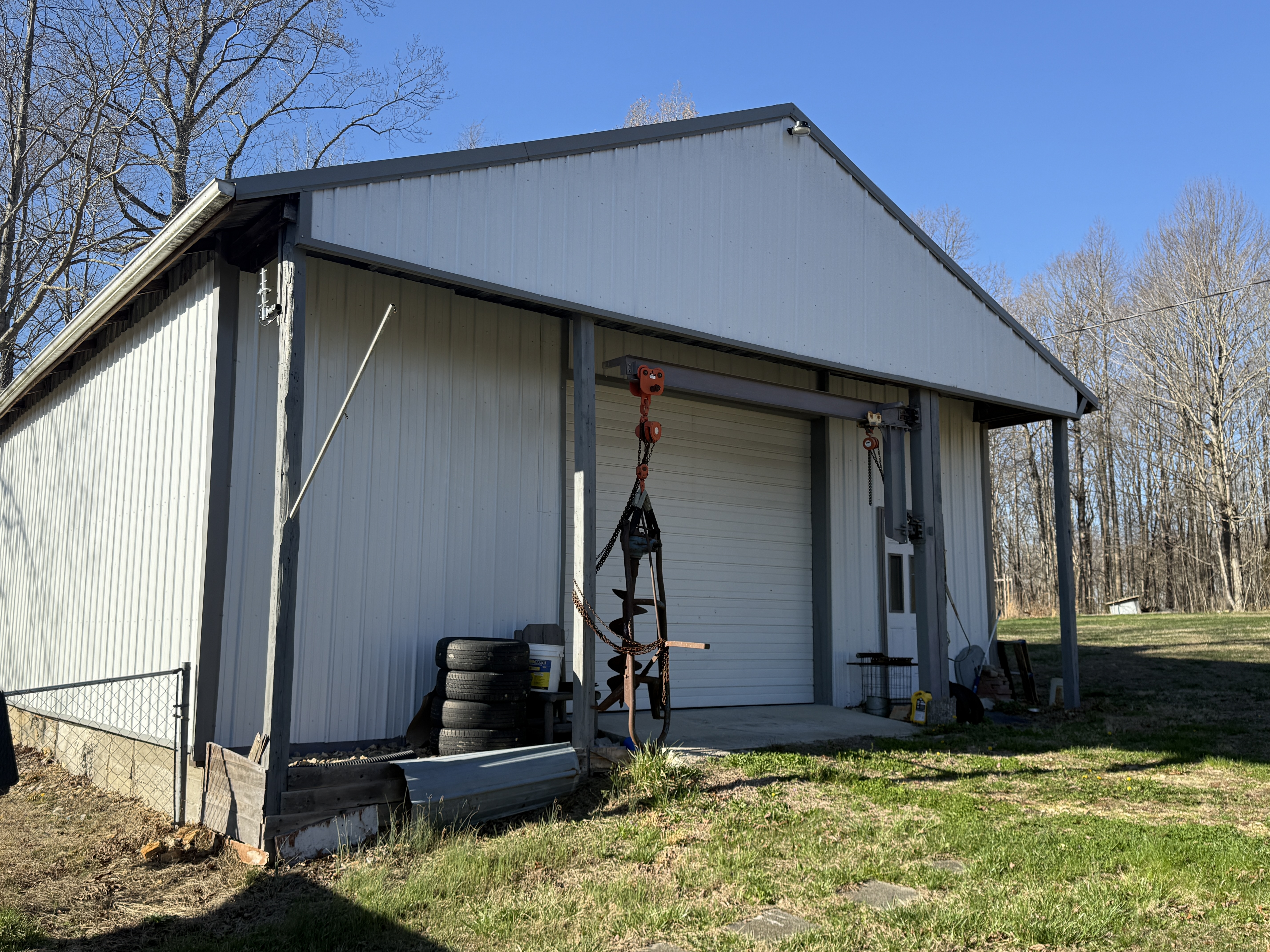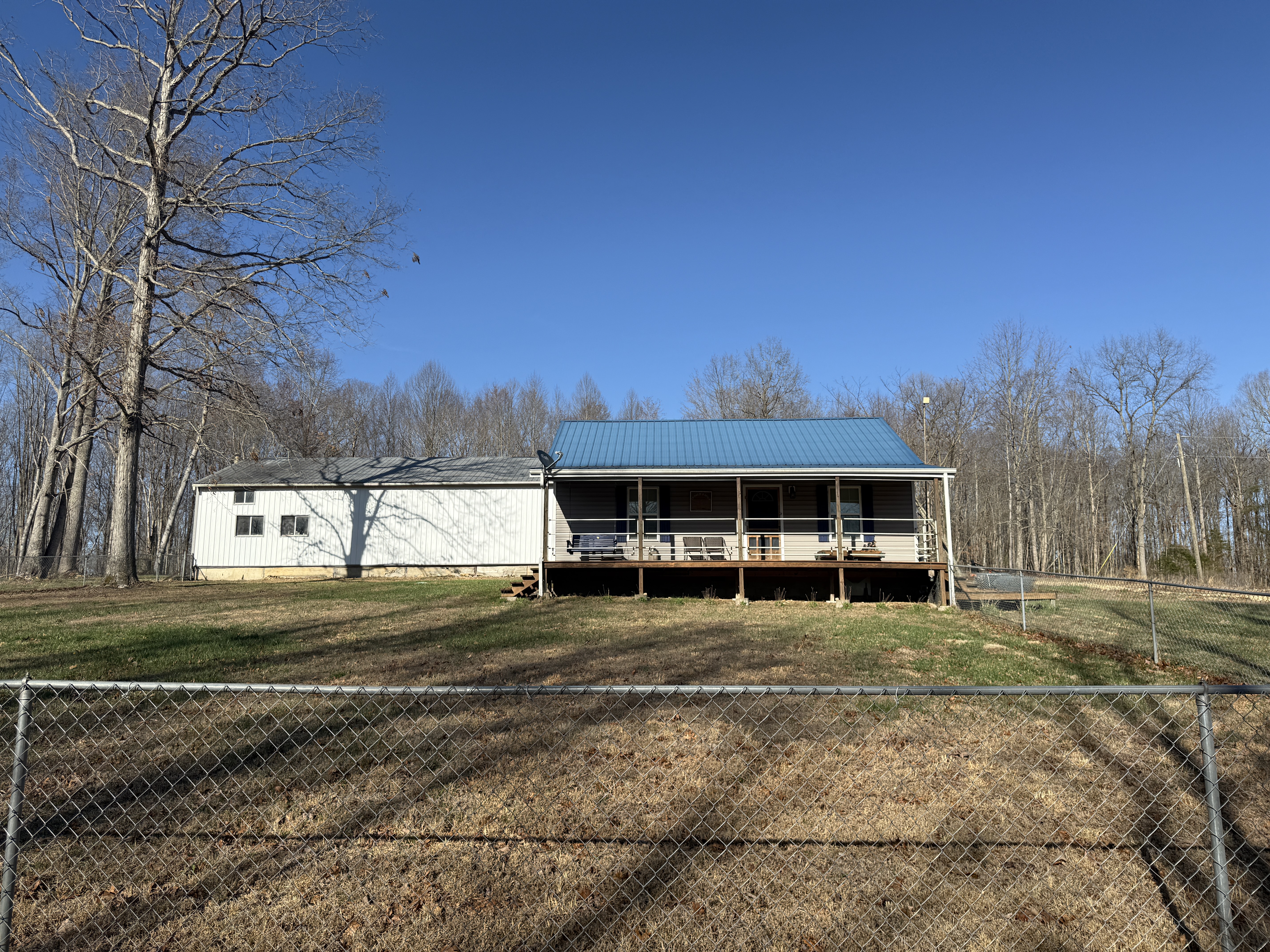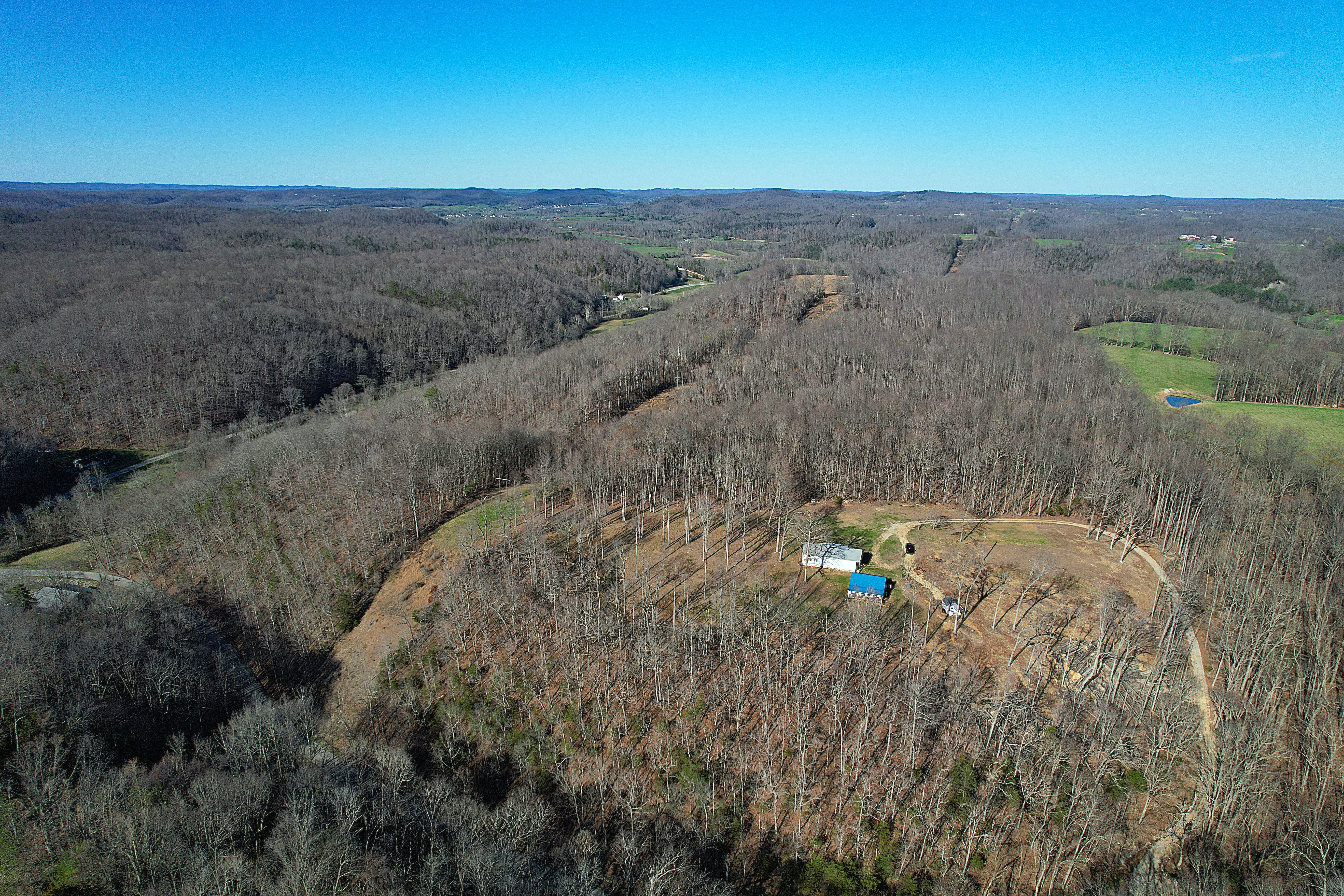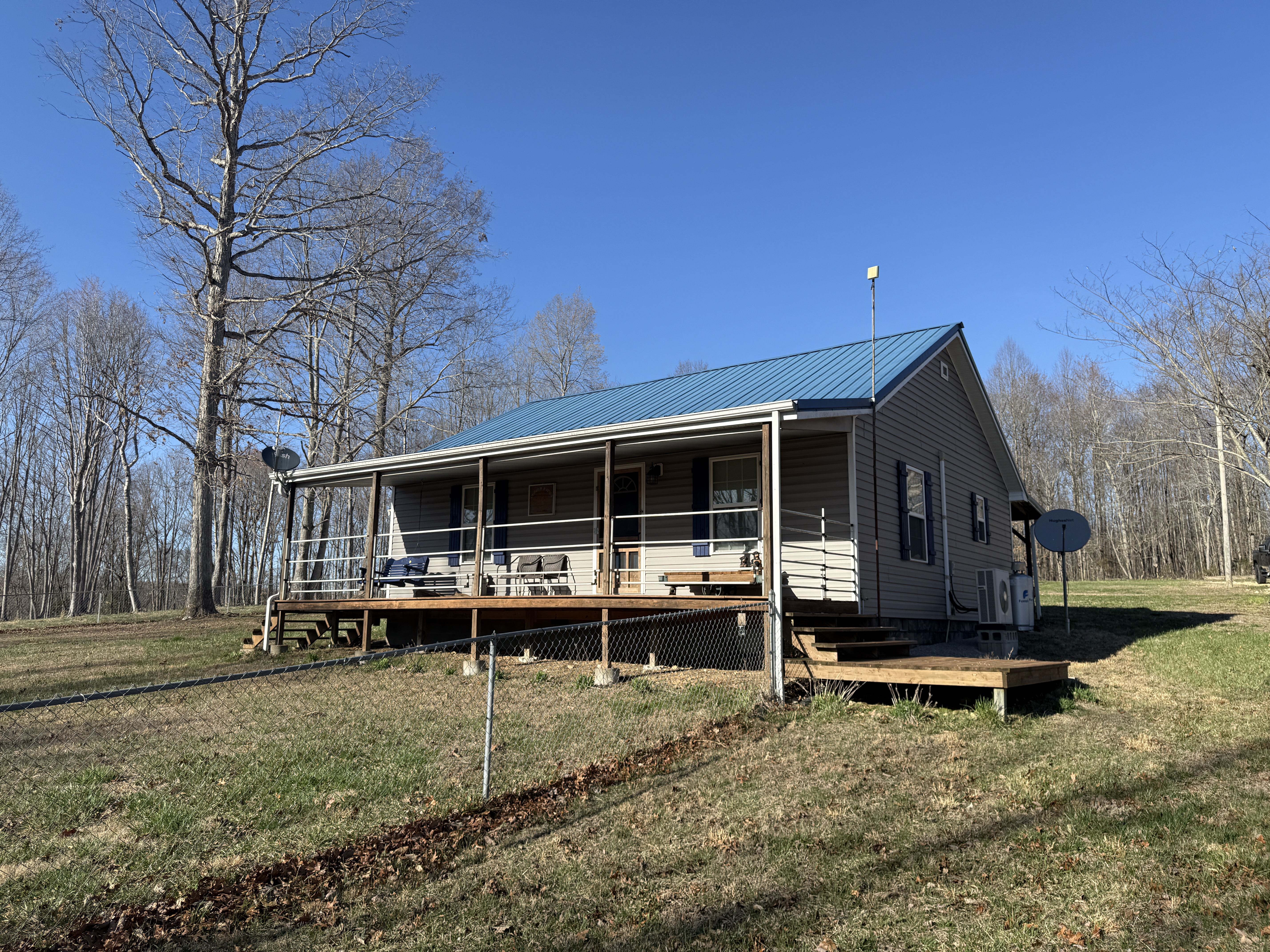 Very nice, well-kept home along with a large garage/workshop on 12.8+/- acres in Casey County Kentucky. The house has connection to electric and county water along with a mini-split unit for heating and air conditioning. The home was built in 2018 and features one bedroom and one bath with approx. 896 square feet of living space. Entering the front door leads to the open concept living room/kitchen area with plenty of room for seating and dining table. The kitchen has a stove, refrigerator and dishwasher that will remain with the property along with custom cabinets. With 12' vaulted ceilings the living space feels very spacious and gives off the country cabin vibe. Around the corner is the bedroom with space for a bedroom suite as well has having two closets. There is a full bathroom along with large laundry room at the back of the home as well. The house offers two covered porches, one on both the front and back of the home giving beautiful views of the outdoors as well as areas to see both sunrise and sunset. The garage offers plenty of space for storage as well as room for wood or metal working, mechanical space or etc. There are separate rooms in the garage with the main working/storage area at the front with a smaller room at the back and an additional closed in shed toward the east end of the building. The land is mostly wooded with clearings near the home as well as a food plot for hunting whitetail deer as well as turkey that are both abundant in the area. The driveway is part of the property but also is an easement for the adjoining land owner to access their land. If peaceful, country living is one of your priorities, you have to check this place out.